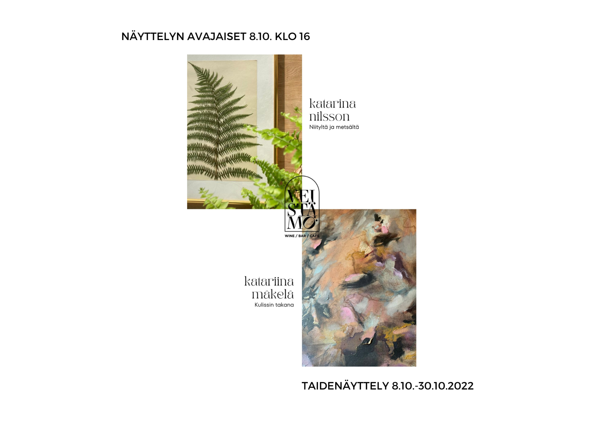 KATARIINA MÄKELÄ; KULISSIN TAKANA & KATARINA NILSSON; NIITYLTÄ JA METSÄSTÄ 8.10.-30.10.2022
