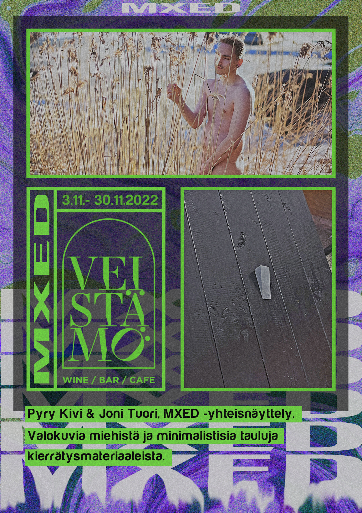Näyttelyhaku aukeaa loppuvuoden aikana. Ole kuulolla ja seuraa meitä Instassa @veistamobar.