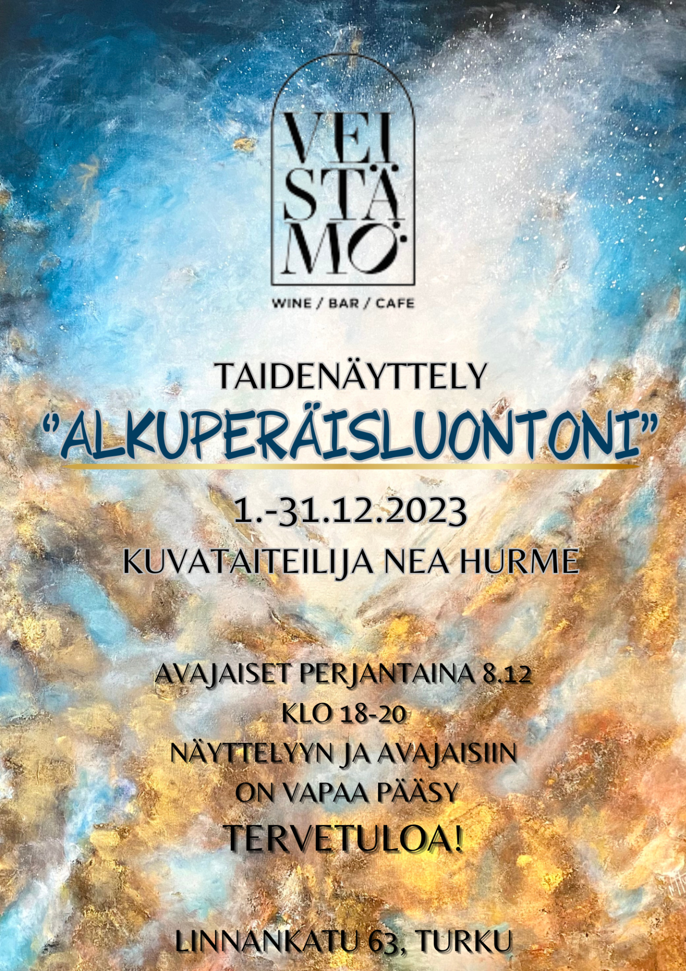 Taiteilija tavattavissa Veistämö Wine Barissa perjantaina 11.4.2025 klo 19.00–21.00!
